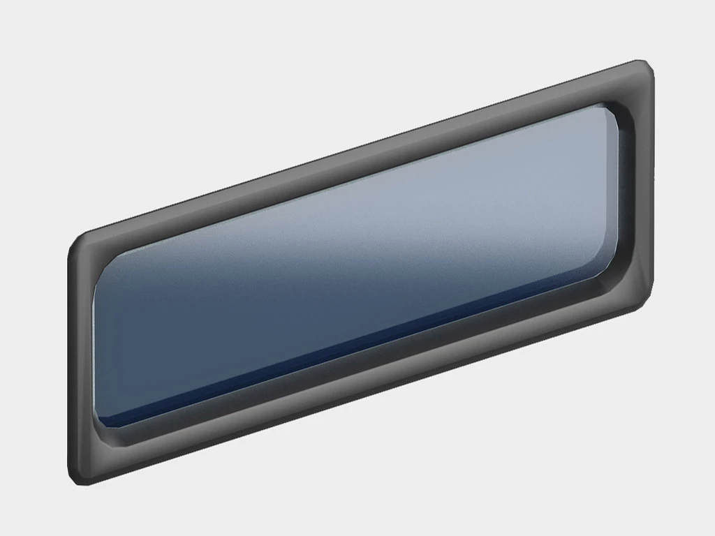 Окно акриловое 627 × 327, черное, промышленное (арт. DH85603). Специальная конструкция обеспечивает плотное прилегание к полотну ворот, что защищает его от промерзания и теплопотери. Окантовка черного цвета.